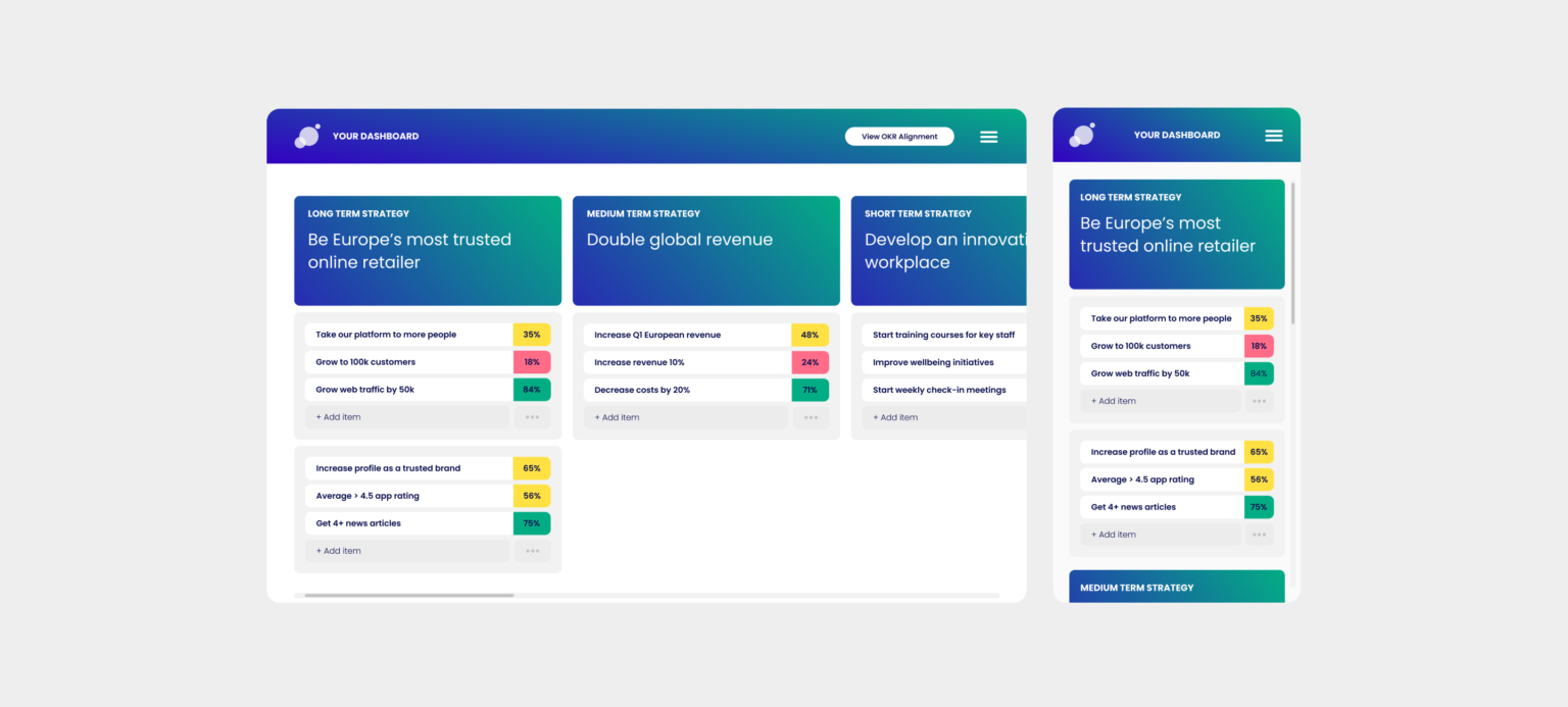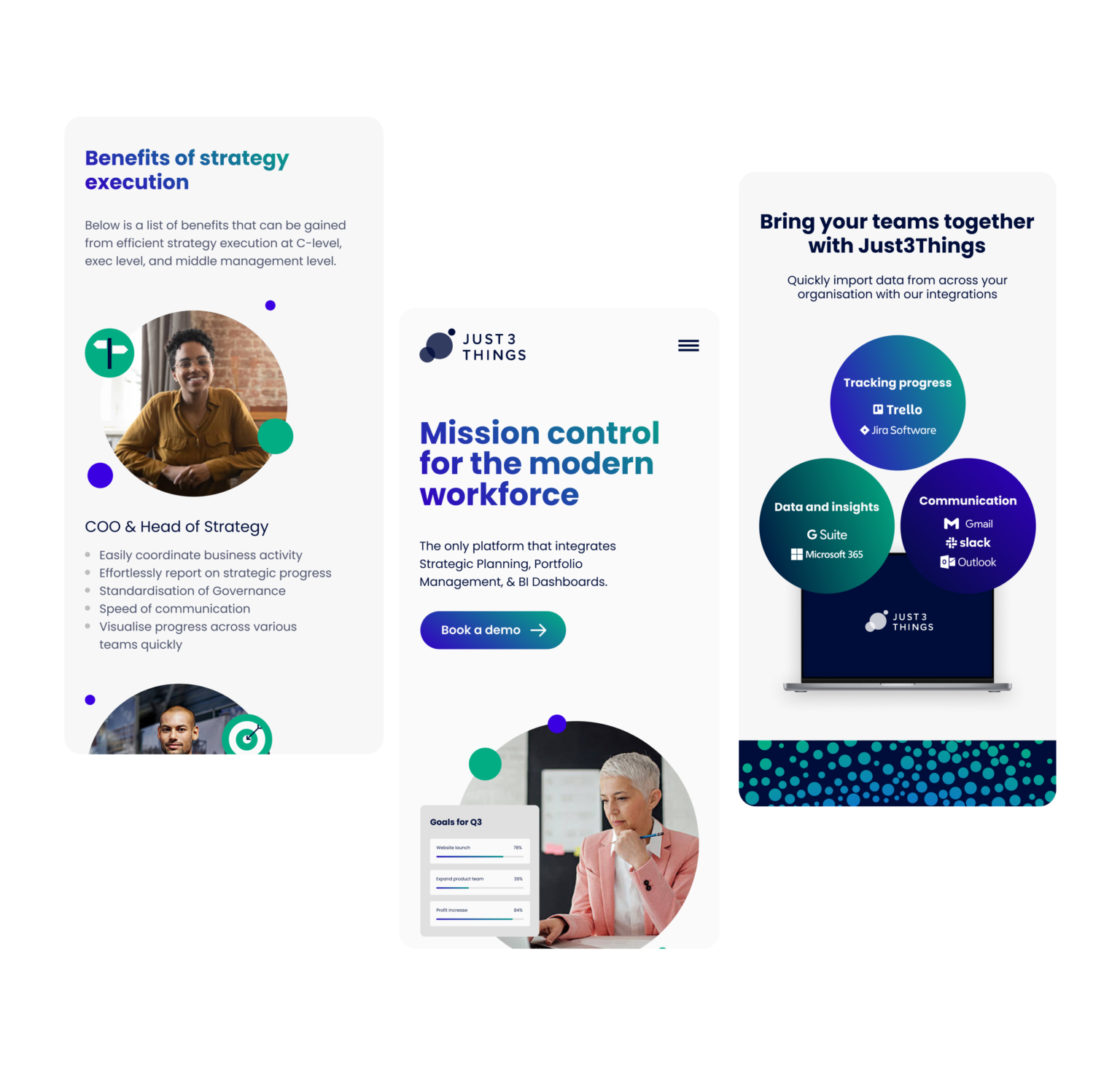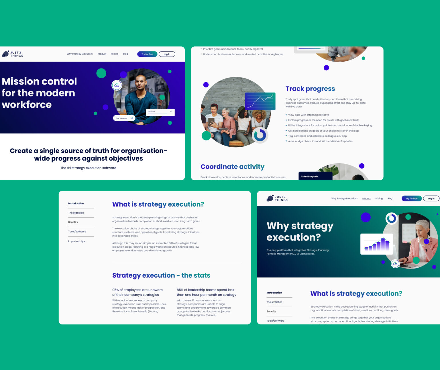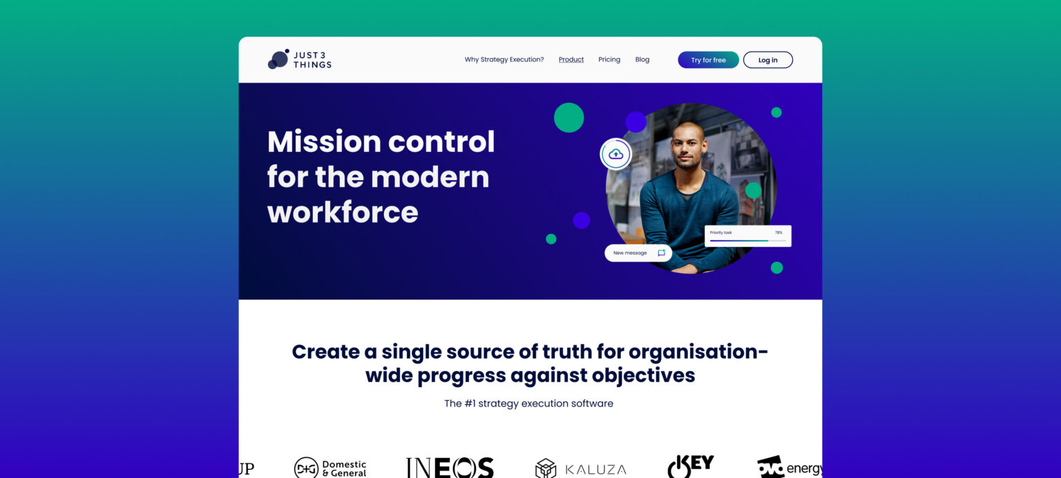 Just 3 Things is a software startup that helps large companies create a single source of truth, for progress on organisational objectives.